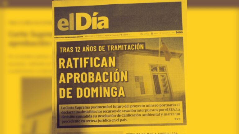 Varios medios de comunicación -liderados por Diario El Día– publicaron al pie de la letra la minuta comunicacional de Andes Iron respecto al fallo de la Corte Suprema sobre los recursos de casación relacionados con Minera Dominga, donde se buscaba instalar la idea de que el perjudicial proyecto minero portuario ha sido aprobado.